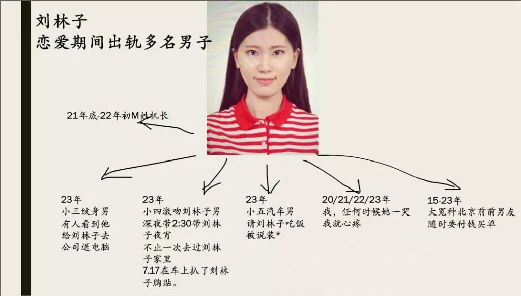 东航上海乘务三部的乘务长刘林子,小红书上的网红空姐,细心打造了一个完美的女神形象,但是被男友爆料在恋爱期间与多名男性维持不当关系,并涉嫌诈骗粉丝超过30万元,最终被其男友揭发。