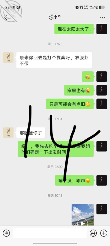 怎么跟兄弟们说呢,事情是这样的,现在不是暑假了嘛,燕妹把她两个小孩接到她那里过暑假了,前段时间我实在太想她了,就经常给她发视频,信息什么的,开始还好好的,可是我感觉她在故意疏远我,越是这样我心里越急,然后我发的就越频繁……!
