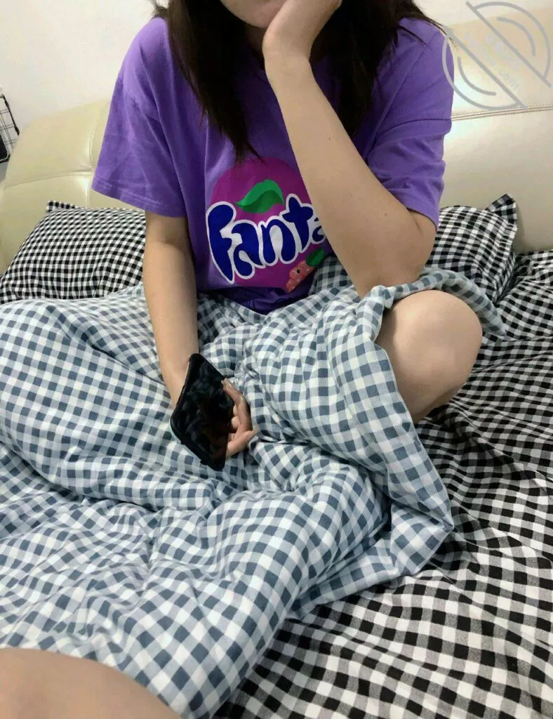 接着说七夕晚上的事,我敲了门,老姐门没锁,让我自己进去.我一进门看到姐姐坐在床上玩手机,只穿了个紫色的长款短袖