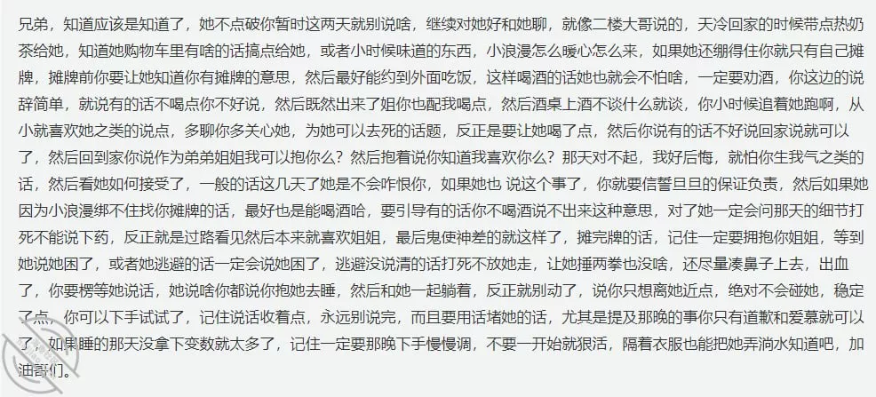 这几天看了兄弟们的评论和私信,我有了一些思路,我意识到想拿下姐姐不是一朝一夕的事,需要慢慢引导和一个合适的契机,可谓是天时地利人和缺一不可,但是我每天跟姐姐在一起生活平淡无奇也没啥好的机会。