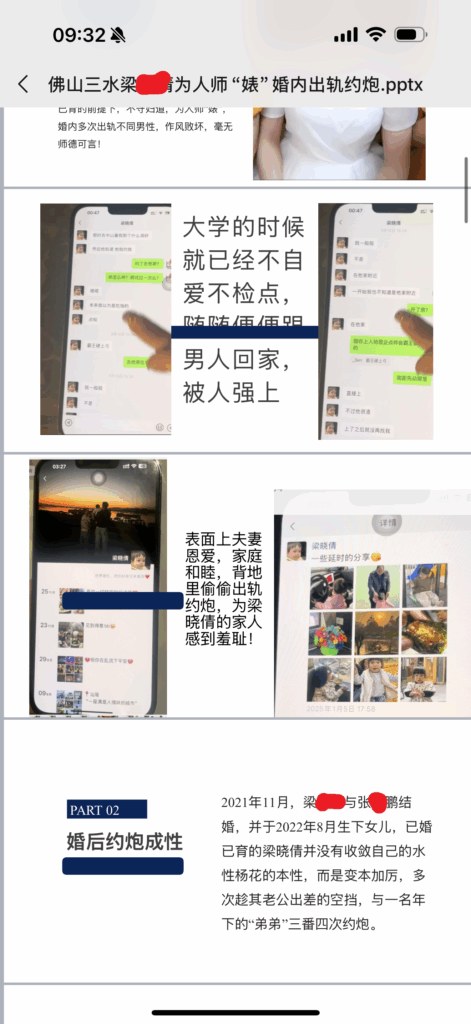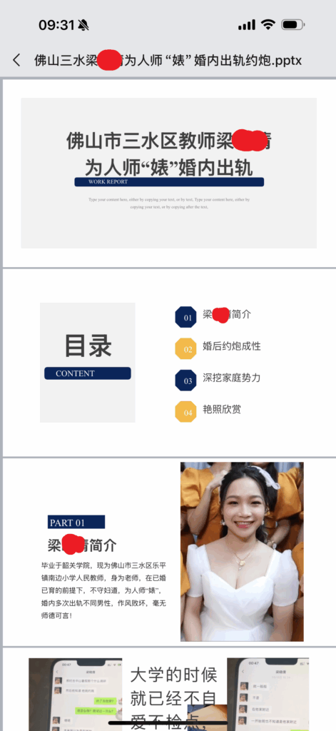 佛山三水教师出轨门为人师婊梁晓倩ppt曝光婚内出轨[内附原件]