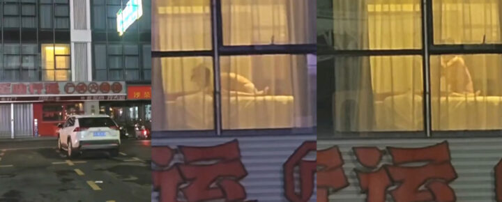 不长记性广州白云区天喜酒店二楼情侣doi不拉窗帘惨遭围观